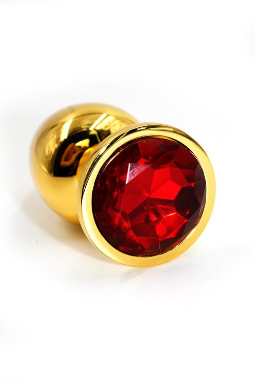 Золотистая анальная пробка с ярко-красным кристаллом, 6х2,8 см